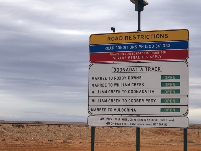 The mornings rain while welcome, exciting and surprising to all was a little concerning for those of us traveling today. As we drove past the start of the Birdsville Track we noticed the rain had closed the track in that direction. Here’s hoping the Oodnadatta was going to remain open.